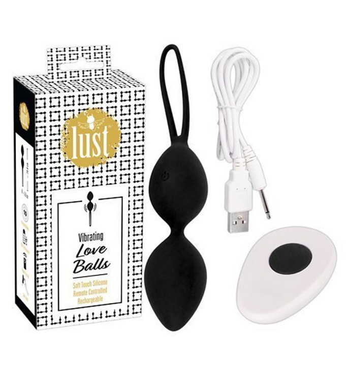 Lust Love Balls Black- Vibrující dobíjecí Venušiny kuličky z černého silikonu. Skládají ze dvou kuliček ve tvaru kužele zakončené manipulační smyčkou. Vybaveno 10 vibračními režimy, které lze ovládat tlačítkem na přístroji nebo dálkovým ovládáním (dosah až 1,80 m). Klepněte na tlačítko pro uložení do paměti. Nabíjí se pomocí přibaleného kabelu USB. Pro uchování zařízení s Li-on baterií se všeobecně doporučuje mít ji při jejím dlouhodobém uložení nabitu cca na poloviční kapacitu. Nikdy neskladujte výrobek vybitý (raději už plně nabitý)! To může vést její degradaci nebo zničení. Kompletní délka 20 cm, vkládací hloubka 11,5 cm, O 3,6 cm. Materiál silikon s povlakem z polyuretanu, bez ftalátu podle nařízení EU REACH. Nepoužívat společně s lubrikanty na bázi silikonů, mohou poškodit povrch silikonových pomůcek. Značka Lust.